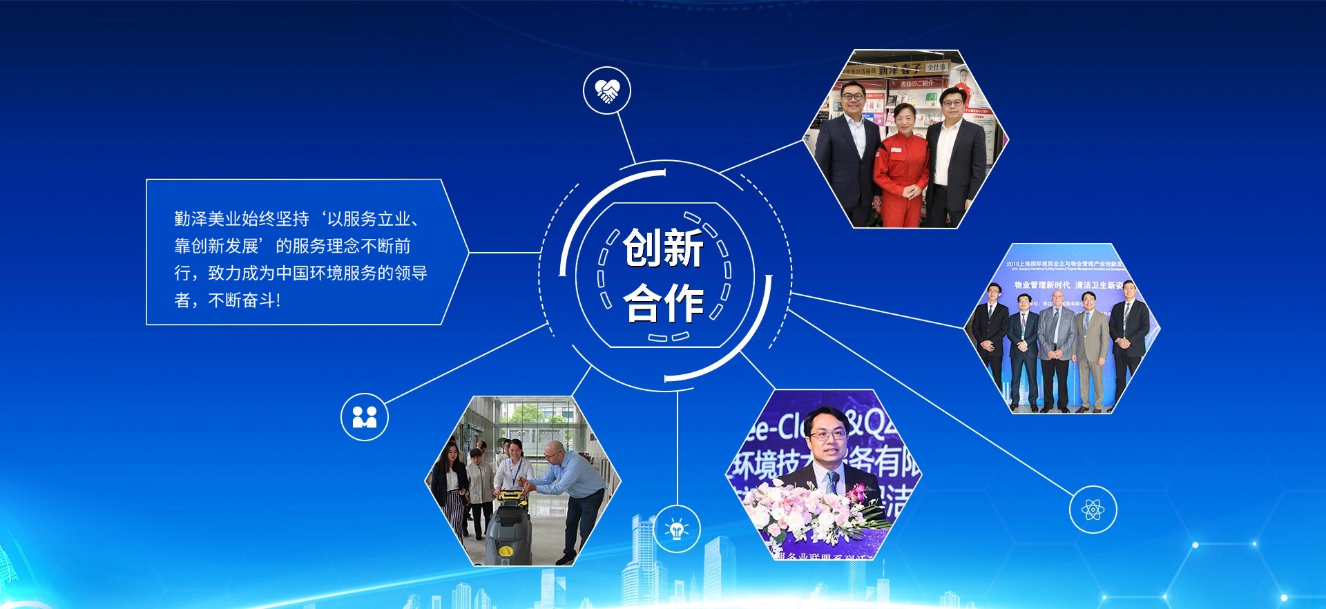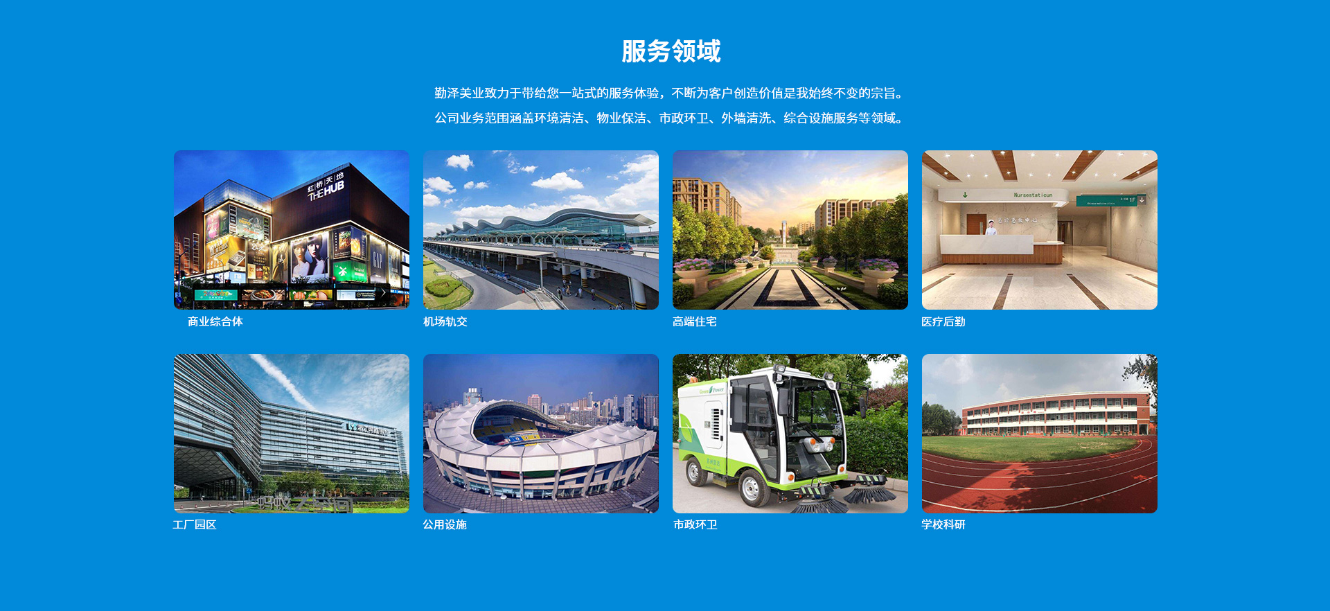 公司致力于把“勤澤美業(yè)”培育成眾口皆碑、令人尊敬、具有長期價(jià)值的服務(wù)領(lǐng)袖品牌。業(yè)務(wù)范圍涵蓋環(huán)境清潔和綜合設(shè)施管理服務(wù),公司具備環(huán)衛(wèi)、保潔、石材等多個行業(yè)一級資質(zhì),致力成為中國環(huán)境服務(wù)行業(yè)的領(lǐng)導(dǎo)者。